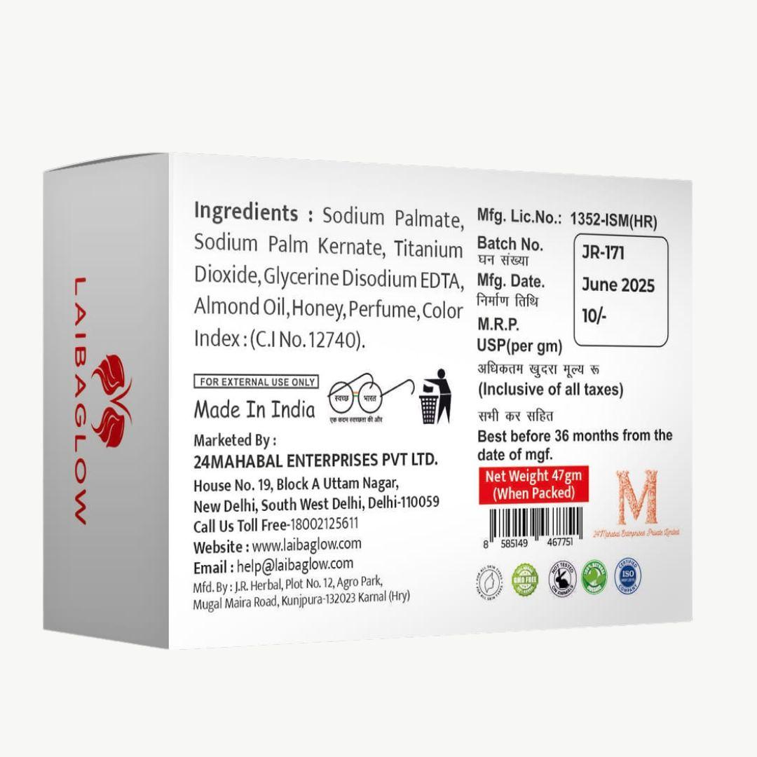 Laibaglow Honey & Almond Soap is a luxurious skincare solution designed to provide deep nourishment and hydration to your skin. Infused with the goodness of honey and almond extracts, this soap helps retain moisture, making your skin soft, smooth, and healthy.