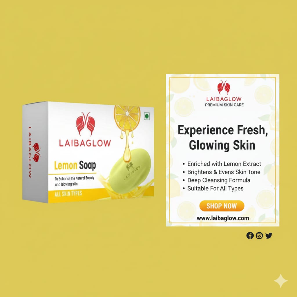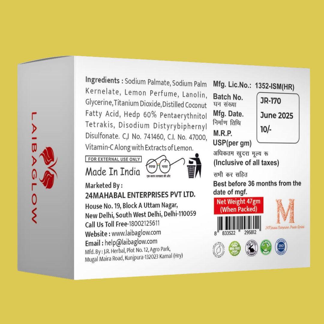 Perfect for all skin types, especially oily and combination skin, Laibaglow Lemon Soap enhances your natural glow while providing long-lasting freshness.