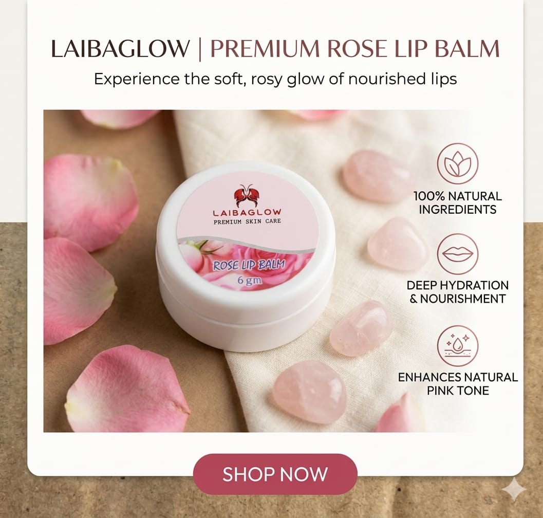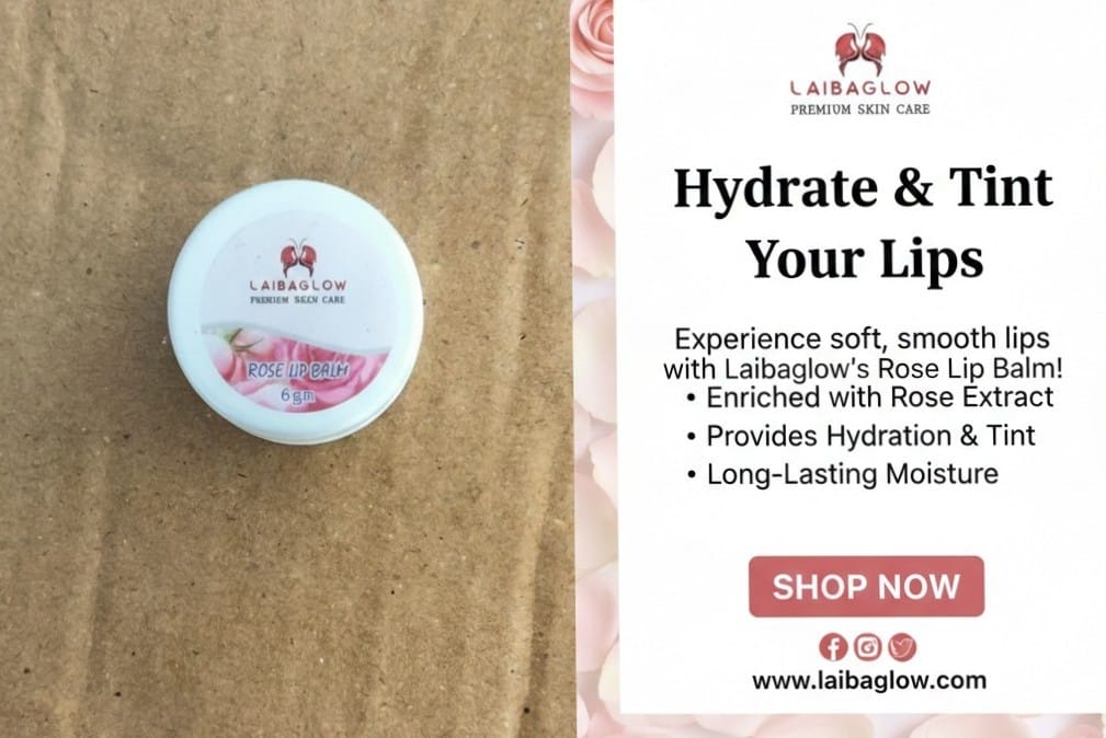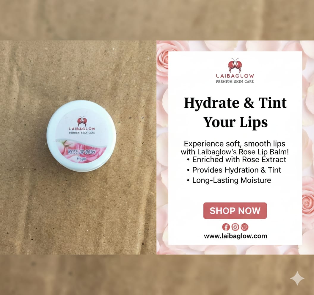 Laibaglow Rose Lip Balm is a gentle and nourishing lip care solution designed to keep your lips soft, smooth, and hydrated. Infused with the goodness of rose extracts, it helps restore moisture and protect your lips from dryness and chapping.
