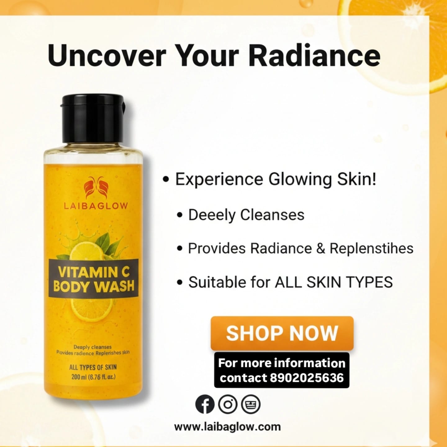 Laibaglow Vitamin C Body Wash is a refreshing and nourishing body cleanser designed to provide deep cleansing and visible skin radiance. Infused with the power of Vitamin C, it helps remove dirt, excess oil, and impurities while revitalizing your skin.