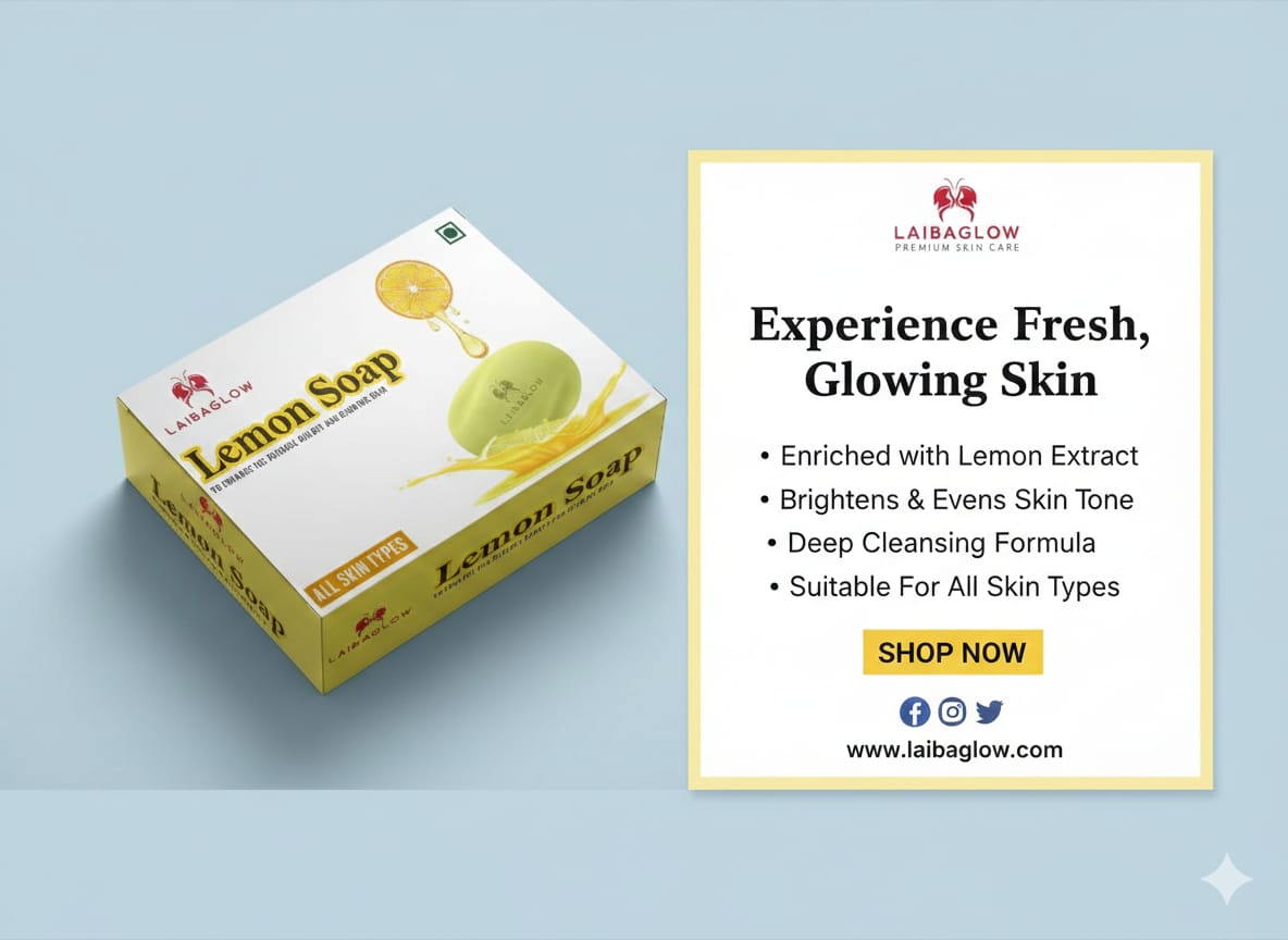 Perfect for all skin types, especially oily and combination skin, Laibaglow Lemon Soap enhances your natural glow while providing long-lasting freshness.
